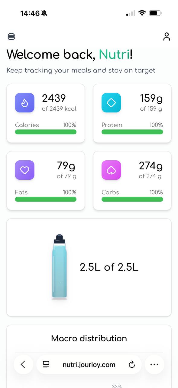 Try itFood, water, photo-based meal analysis, body, wellbeing, and cycle tracking in one clear daily view.